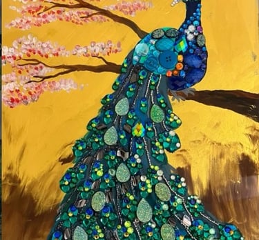 Handmade treasures combining Naomi’s mixed media flair with Rick’s woodcraft.
